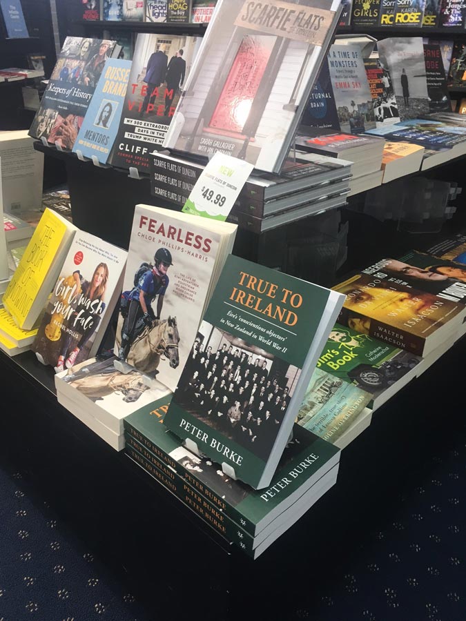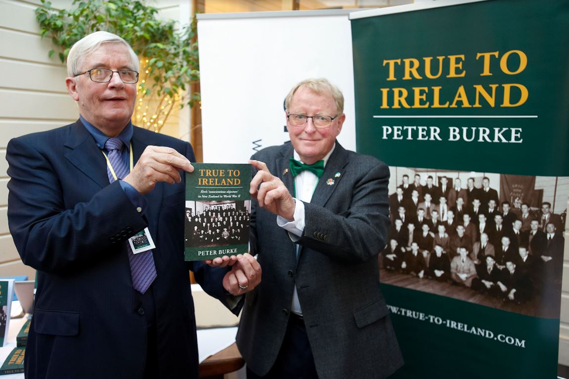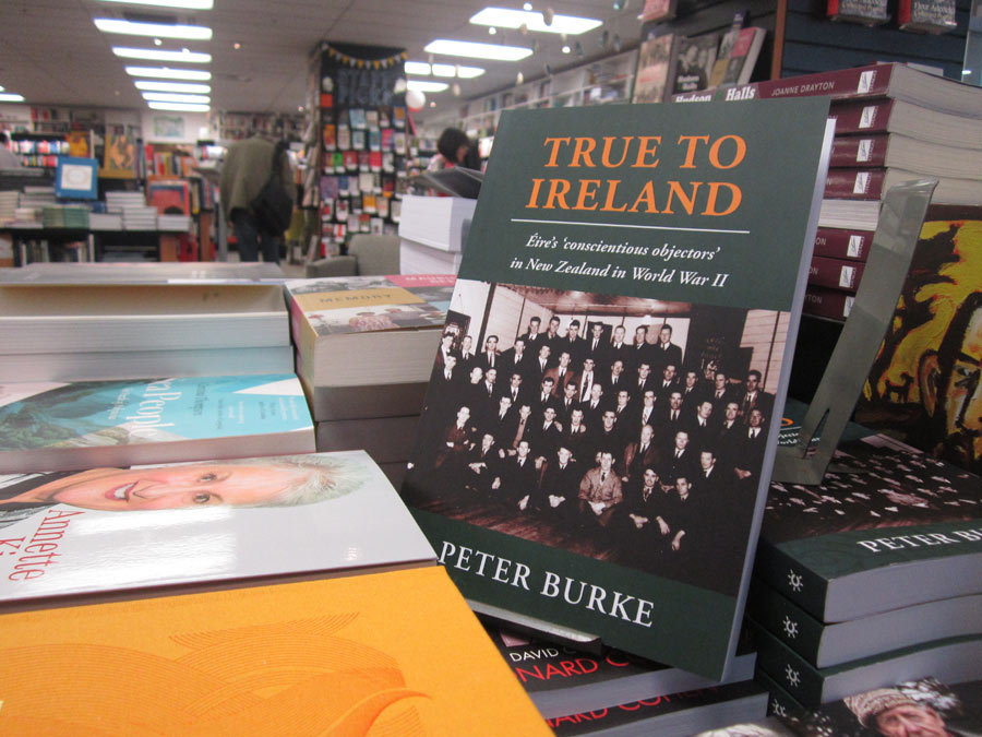 Ireland's Ambassador to New Zealand, Peter Ryan, Peter Burke, and Damien O'Connor the Minister of Agriculture Peter Burke signing the book at the Thistle Inn – Wellington's oldest pubPeople with Irish links and friends at the launchA walking tour with Peter to places in Wellington which were of special significance to the Sons of Eire Special guest Fr Eamon Aylward from Ireland and Peter Burke. Fr Eamon at the grave of his uncle Maurice at Opunake Fr Eamon talks to Josie Hogan on the farm where Maurice livedFr Eamon speaking at the Levin Library eventMass at St Mary's Catholic church OtakiLynette Wharfe brings up the two official books at the offertory procession. The books are resting on the Irish flagA large group watch on as Fr Eamon blesses the headstone and grave of Paddy Sullivan at the Otaki cemeteryPeter celebrates St Patricks dayGuests at the Auckland launch of True to IrelandGuests at the Auckland launch of True to IrelandGuests at the Auckland launch of True to IrelandGuests at the Auckland launch of True to IrelandThe book at Unity Books, WellingtonThe book at Muir's, GisborneThe book at Bruce McKenzie Books, Palmerston NorthThe book at Paper Plus, Levin